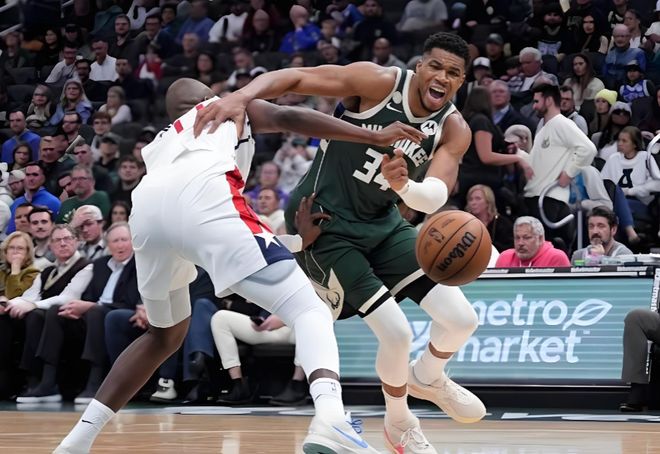 同为冲击力出色,投射短板明显的大前锋,东部赛区也有一个类似的对比:字母哥。