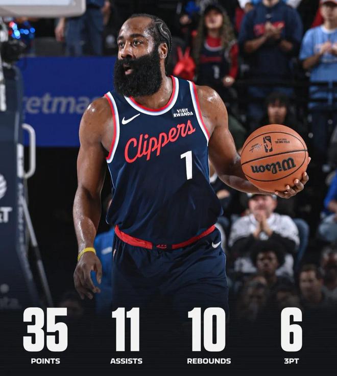 由于比尔报销、伦纳德受伤、保罗和博格丹老化,这赛季的快船后场能依赖的几乎只有哈登,后者目前场均23.4分5.2篮板9.3助攻,得分、助攻均为过去三年最高。